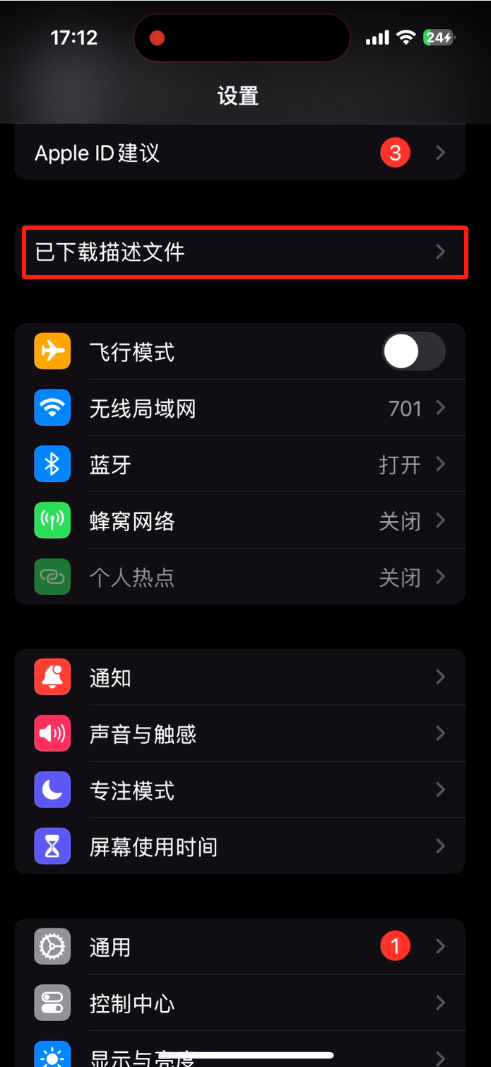 用苹果自带的扫码器扫码,进入网址下载文件,弹出下载完成后进入手机设置