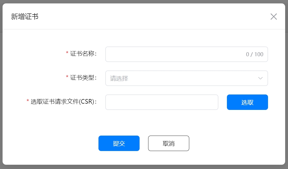 弹出窗口输入:1、证书名称 2、证书类型:调试证书、发布证书 3、选择下载的CSR文件